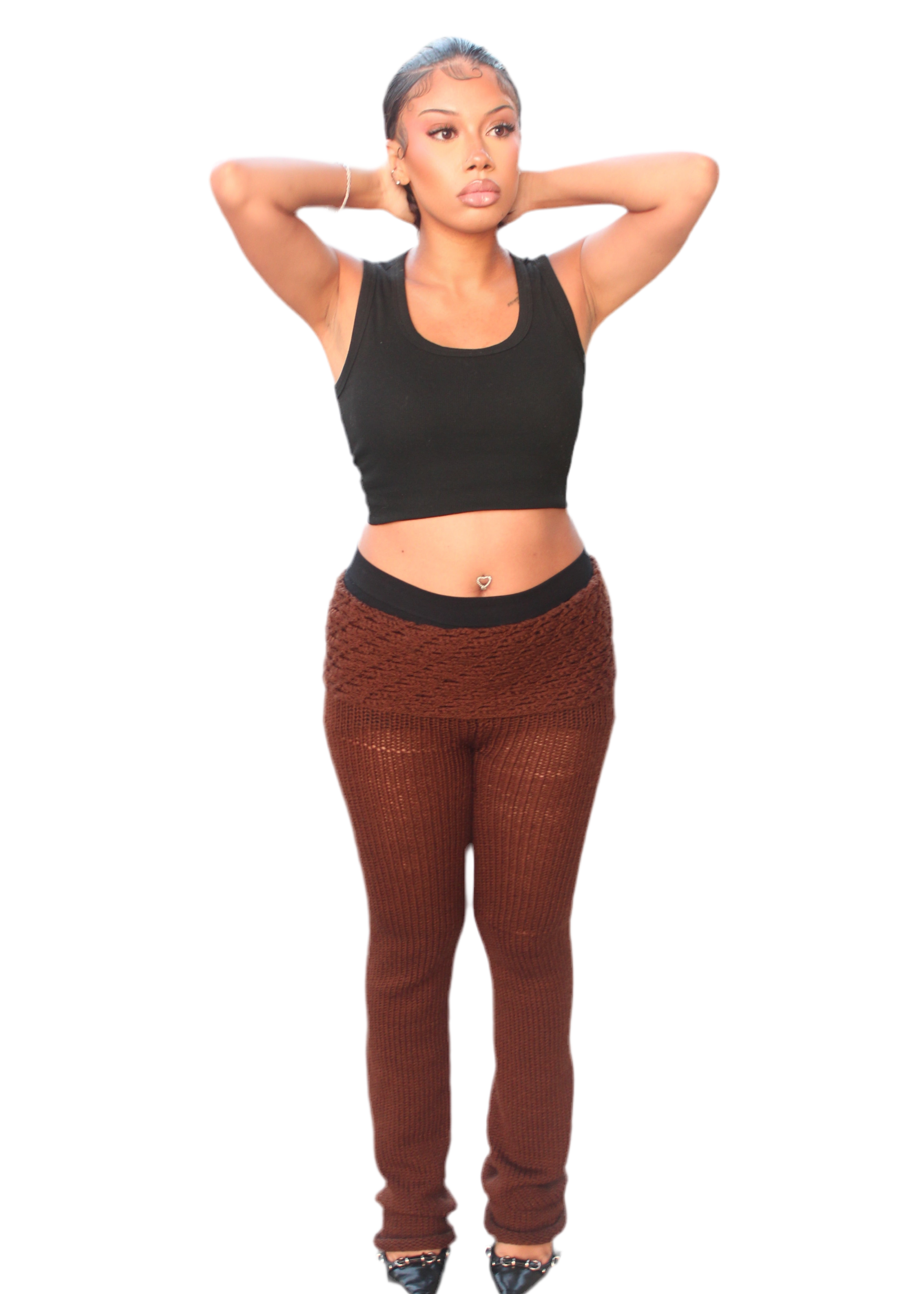 Pantalon crocheté à la main en fil polyester doux et léger. Il est conçu avec des mailles ajourées pour un look respirant et estival, et la taille basse assure un ajustement confortable.